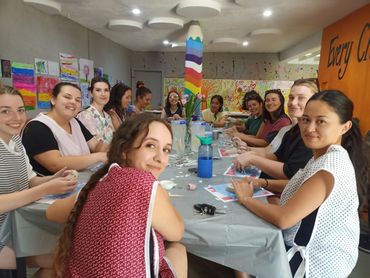 This fun 1 1/2 hr group online experience allows you to still enjoy a social gathering but in the comfort of your own space. Gather your family and friends from around the corner or from across the seas, see their beautiful faces, blow kisses and share your hidden talents and masterpieces.