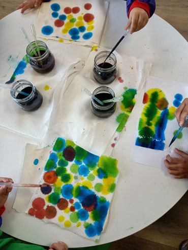 Children’s creative freedom is kept alive, by the facilitated art activities. Activities which are fun, interactive, exciting, interesting, challenging, stimulating, open-ended, inspire imagination and most certainly, tactile.